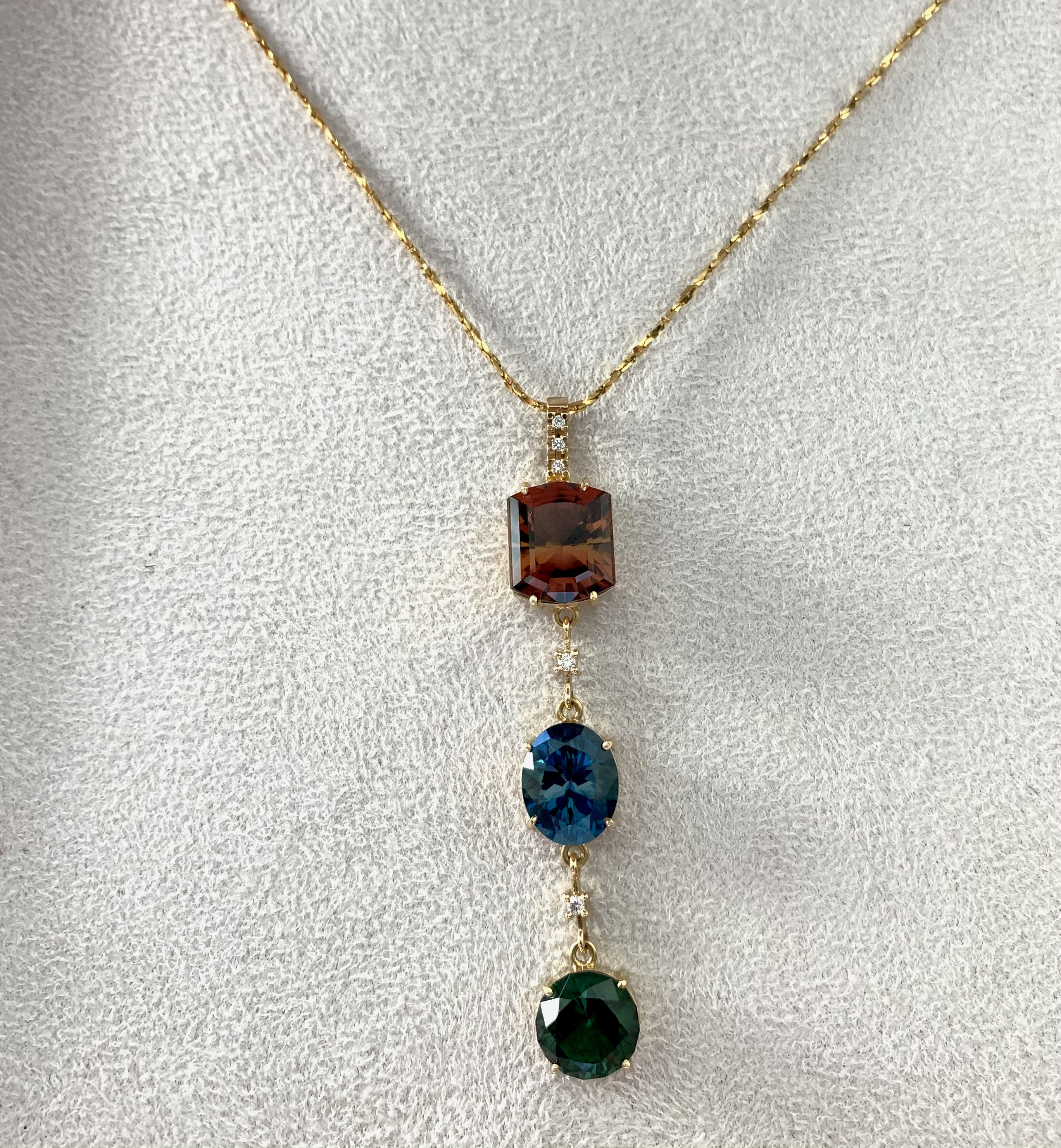 As joias Dunna são leves e versáteis, compõem tanto o look para o dia a dia quanto para festas, tendo as pedras coloridas como elemento central e o diamante como coadjuvante para adornar e enaltecer a gema.